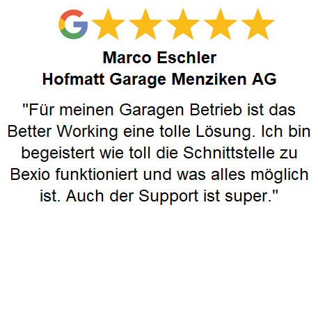 BetterWorking ermöglicht Ihnen eine nahtlose Integration in Ihre bestehenden Systeme und Prozesse. Unsere Schweizer Werkstatt Software bietet Ihnen die perfekte Verknüpfung mit leistungsstarken Partnern wie bexio und HaynesPro, um Ihre Werkstattverwaltung und Autoreparatur noch effizienter und reibungsloser zu gestalten. Profitieren Sie von einer umfassenden Lösung für Ihr Werkstattsystem und erleben Sie, wie einfach und intuitiv unsere Werkstattprogramm-Integrationen sind.